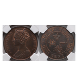 Reverse: Chinese value within beaded circle, dated lower right, with the mintmark above the line between 'HONG' AND 'KONG'