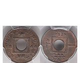 Obverse: Crowned monogram with lettering around hole