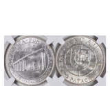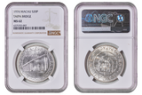 Reverse: Junk (ship) passing under Taipa bridge within circle