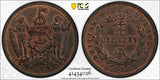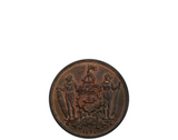 Reverse: ONE CENT in the center between two Malaysian characters and two laurel branches.