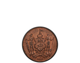 Reverse: ONE CENT in the center between two Malaysian characters and two laurel branches.
