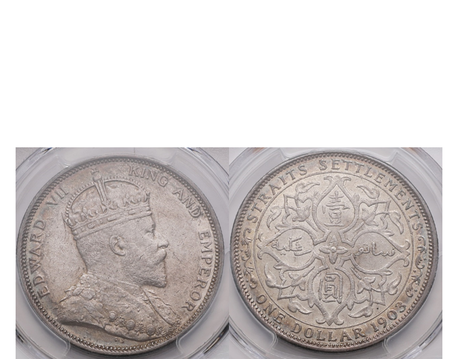 Reverse: Arabesque pattern surrounding denomination in Chinese and Malay; English lettering around