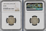 Hong Kong Victoria 1893 Silver 20 Cents NGC XF 45